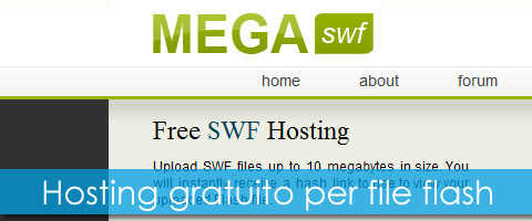 Finalmente, dopo l’invenzione dei servizi hosting interamente dedicati alle immagini, ai video, alle canzoni e alle applicazioni (exe), alcuni sviluppatori hanno deciso di creare un servizio gratuito per l’hosting di file flash (swf).