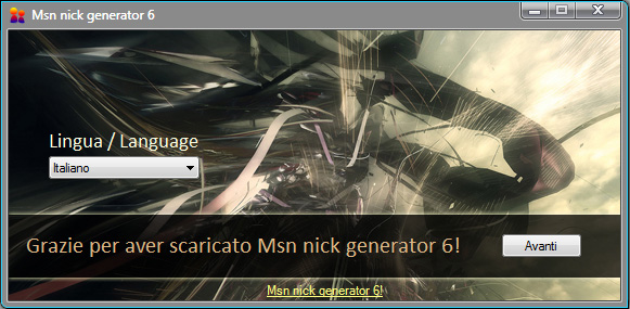 Msn nick generator 6 si presenta con una grafica totalmente rinnovata ed è ancora più semplice ed intuitivo da utilizzare. La grande novità vede l’integrazione della lingua inglese, oltre all’italiano già presente in precedenza.