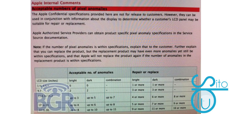 Da qualche settimana Apple sta attuando qualche cambiamento interessante che riguarda l’ assistenza dell’Apple Care. A rivelare nuovi importanti dettagli è stato il sito BGR che sarebbe in possesso del nuovo documento della mela morsicata che sarà spedito in forma privata ai negozi Apple e che mostra in modo chiaro la situazione riguardante la sostituzione di dispositivi nei casi con display affetti da pixel bruciati.